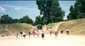 A race in the original Olympic stadium. Kate may seem to be winning, but our friend Audrey will get the coveted laurel wreath! |
